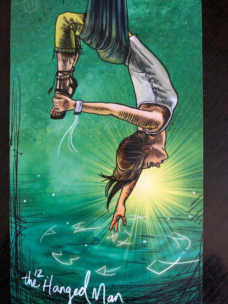 The Hanged Man* , the 12th card of the Tarot , invites a pause for reflection, urging us to look at things from a different perspective. He is suspended in time, not by force, but by choice, as a sign of surrender and acceptance. Sometimes, the path to growth requires us to let go of old patterns and see the world through new eyes. The Hanged Man teaches us that there’s wisdom in stillness, and that taking a step back can lead to profound insights. It’s not about passivity, but about embracing a shift in how we approach life. By letting go, we free ourselves to see the bigger picture and trust the process, knowing that sometimes stillness is the most powerful form of action.