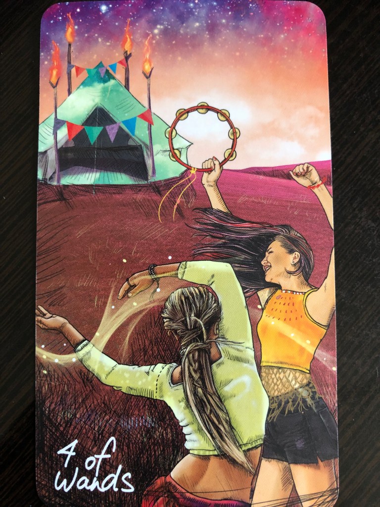 The 4 of Wands says, ‘Cool. We’ve got soup, sage, and soul contracts under a tarp in the woods. And we’re doing just fine.’